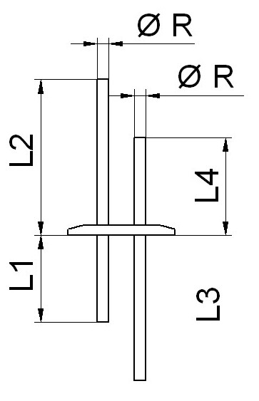 2-way liquid feedthrough 304 DN32/40 ØR=6 / L1=50 / L2=75 / L3=80 / L4=45
