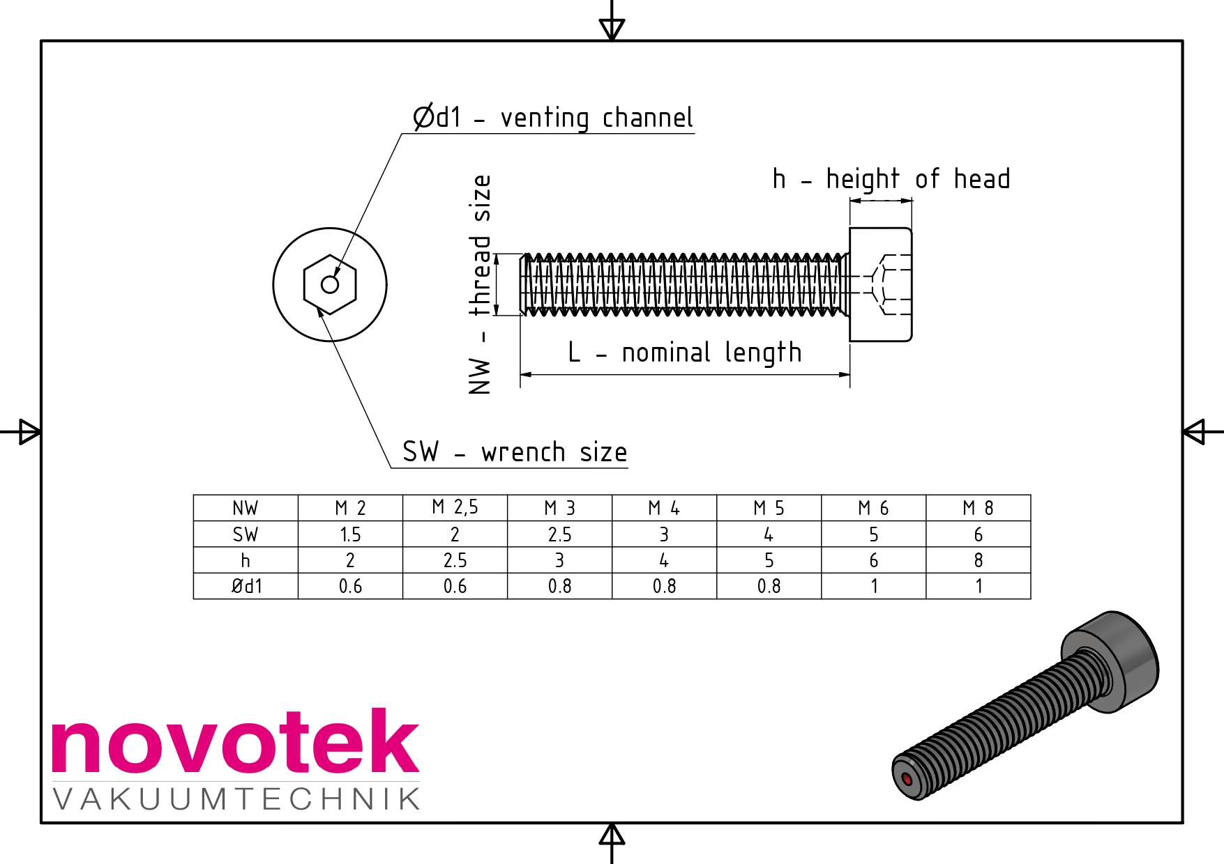 Category: Vakuumoptimierte Schrauben,Unbeschichtet,ISO4762 (DIN912) Zylinderkopfschraube mit Innensechskant ISO 4762 (DIN 912) M2x14, A2, mit zentr. Entlüftung